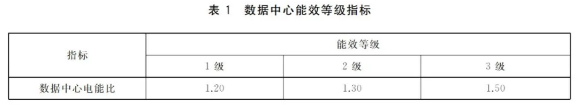 該標準規定了數據中心的能效等級與技術要求、統計范圍、測試與計算方法。數據中心能效等級共分為3級,1級表示能效最高;3級能效為數據中心能效限定值。