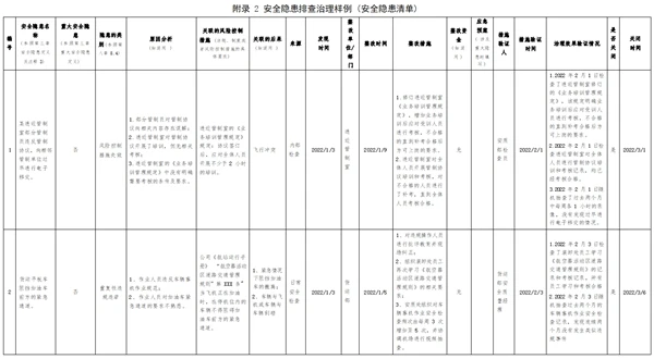 (2)對重大安全隱患除填入安全隱患清單外,還應建立專門的信息檔案,包括重大安全隱患的治理方案、復查驗收報告以及報送情況等各種記錄和文件。