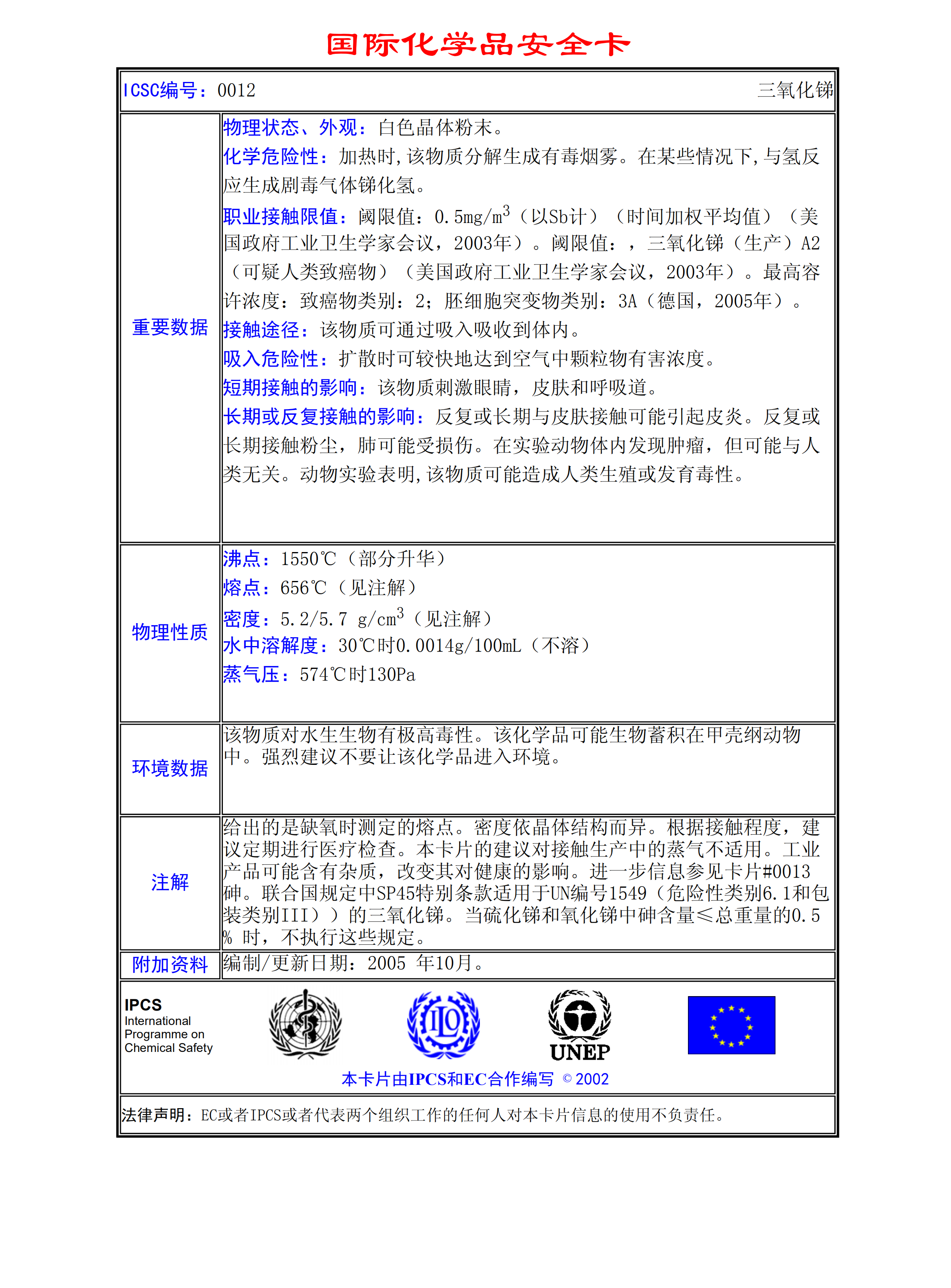 三氧化弟 MSDS