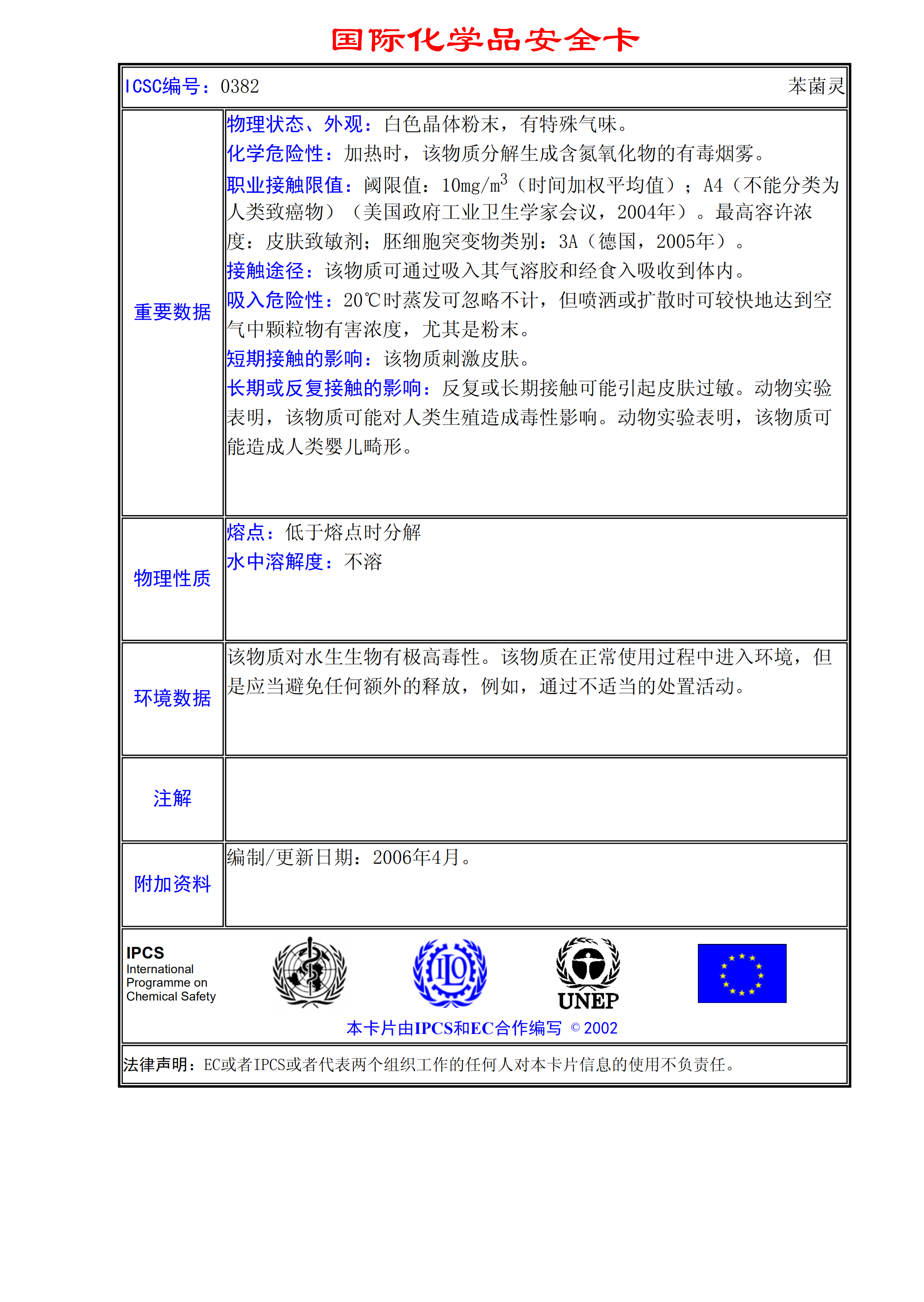 苯菌靈MSDS