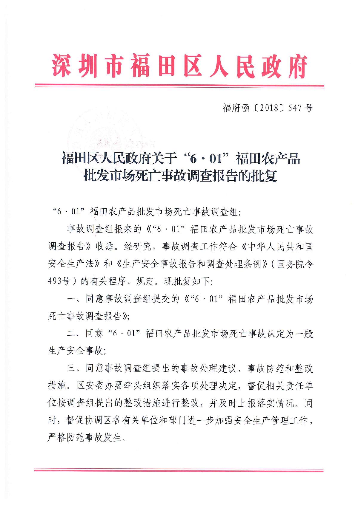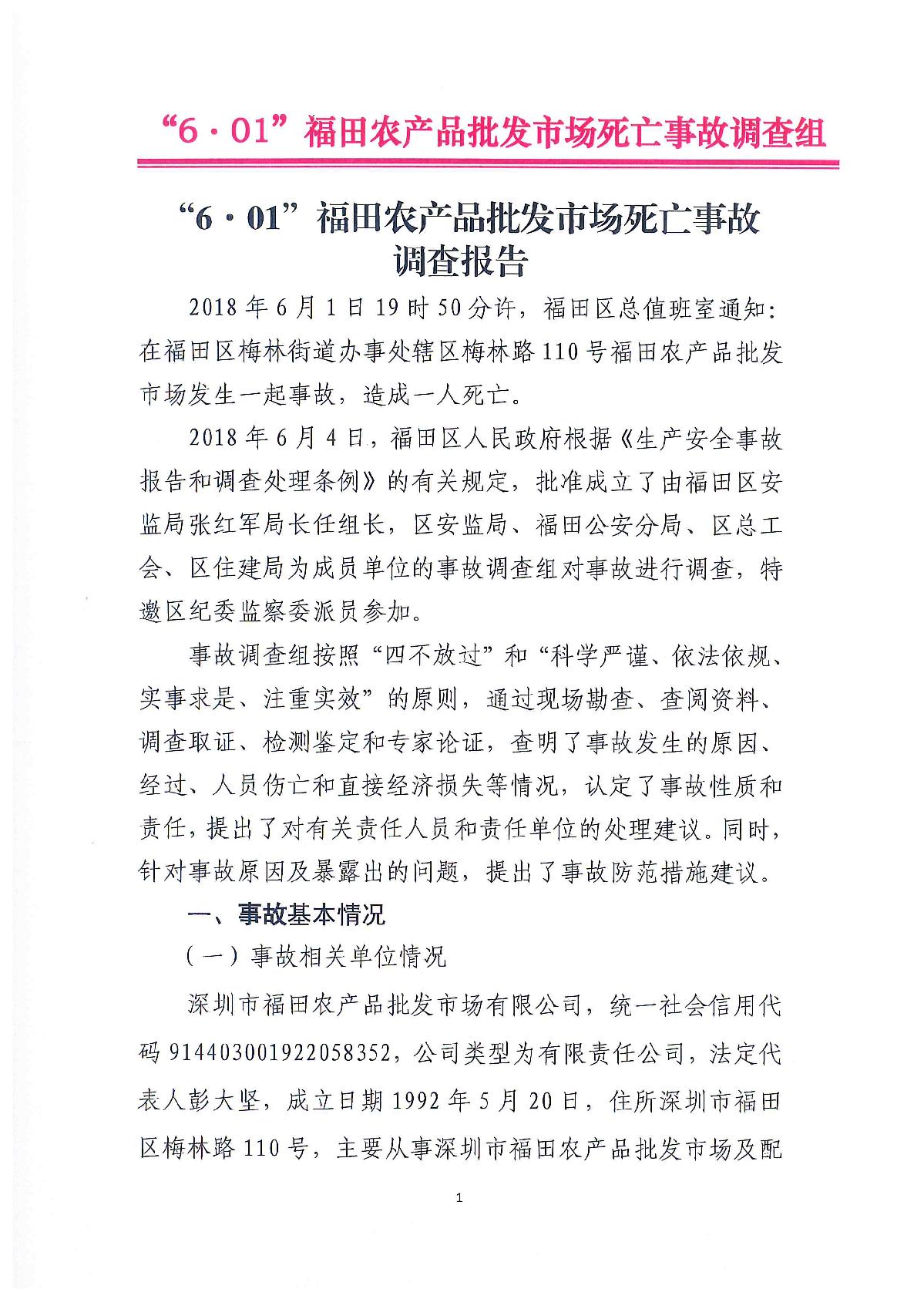 “6.01”福田農(nóng)產(chǎn)品批發(fā)市場(chǎng)死亡事故調(diào)查