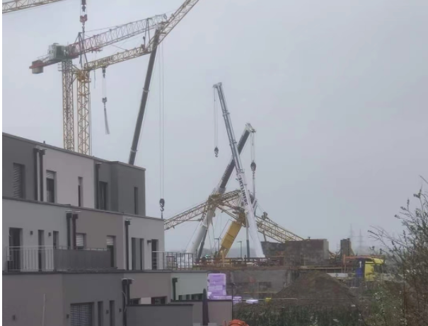 2022年4月9日盧森堡首都一在建工地塔吊施工作業時發生倒塌事故、傷亡情況不明、具體事故原因還在調查中、以官方公布為準、安全生產人人有責、嚴重違章超載作業。