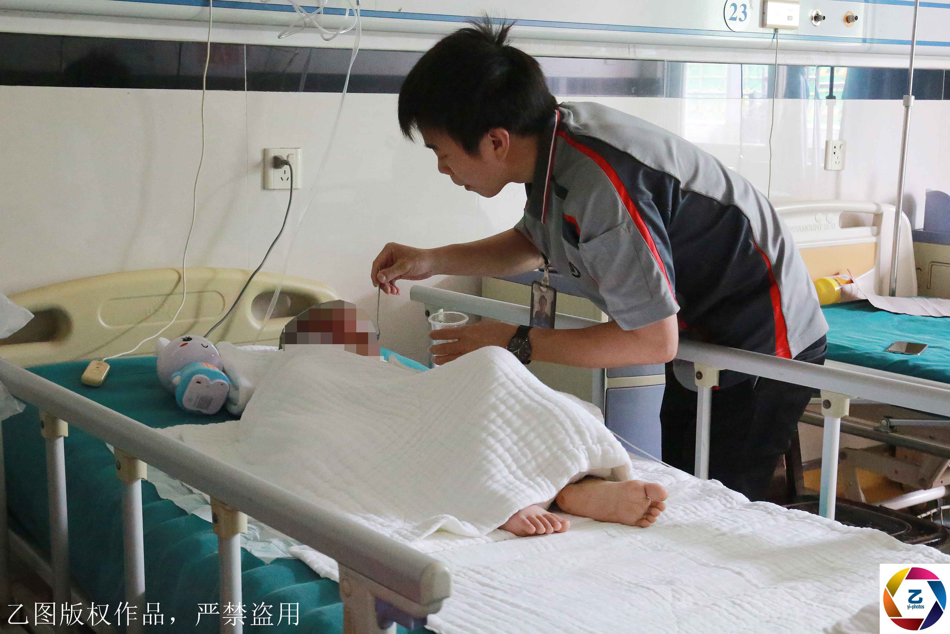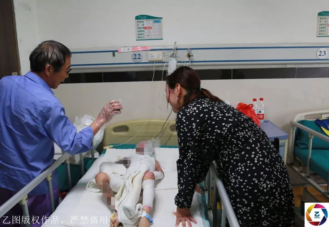 經(jīng)過(guò)搶救,小俊逸幸運(yùn)活了下來(lái)。據(jù)悉,小俊逸在爆炸中重度燒傷,深二度達(dá)9%,深三度達(dá)40%。醫(yī)生說(shuō)孩子的雙手無(wú)法保住,但是馬上截肢孩子會(huì)有生命危險(xiǎn),需要先治療一段時(shí)間后再做手術(shù)。清醒之后的小俊逸不時(shí)痛苦地呻吟,他還不知道,爸爸和哥哥已經(jīng)永遠(yuǎn)離開(kāi)了他。圖為護(hù)工在照顧躺在病床上的小俊逸。