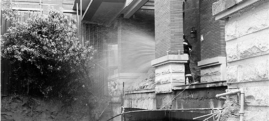 消火栓取水時(shí),新的問題出現(xiàn)了。“消防栓在一處花欄墻附近,出水口緊貼著墻面,根本就沒辦法用。”為了不耽誤救援工作,消防官兵立即用器材對消火栓周邊墻壁進(jìn)行處置,留出足夠的空間供水帶取水。